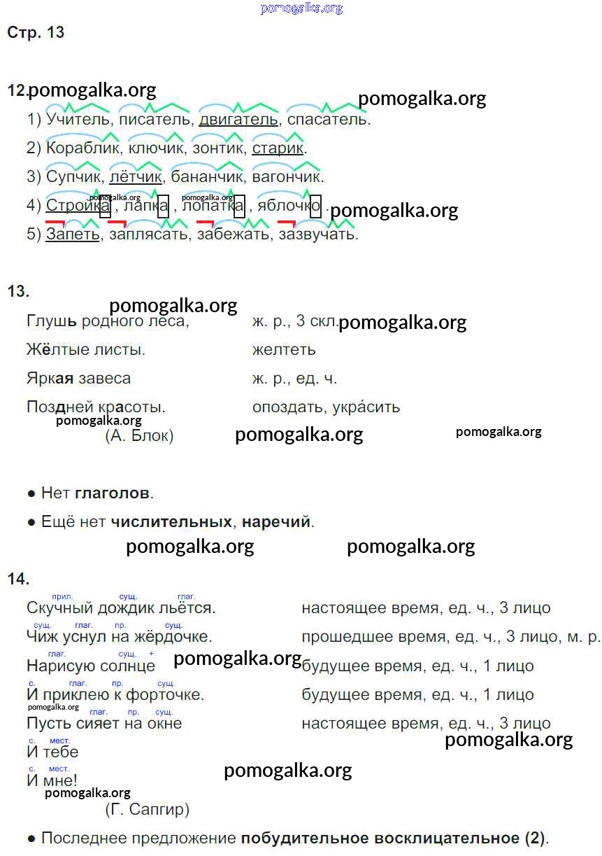 Готовые ответы - Русский язык 4 класс тетрадь для самостоятельной работы. Потренируйся! Корешкова Т.В. - часть 1. страница 13