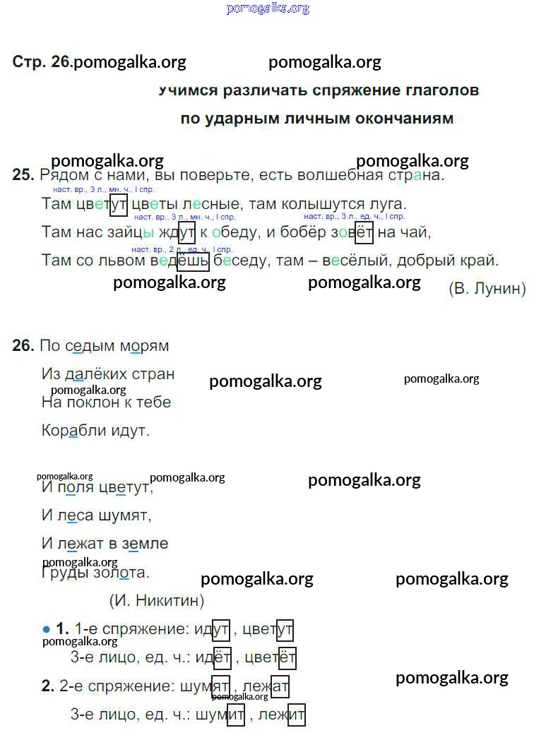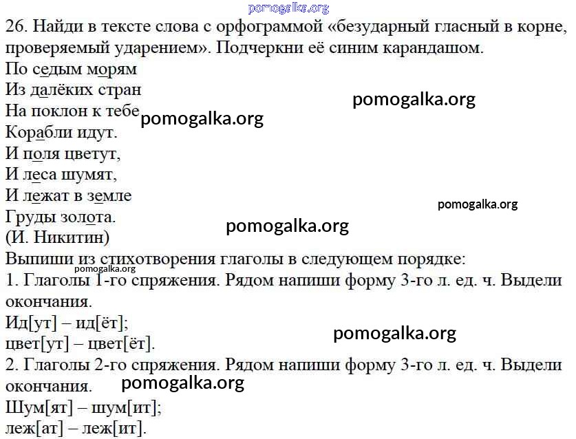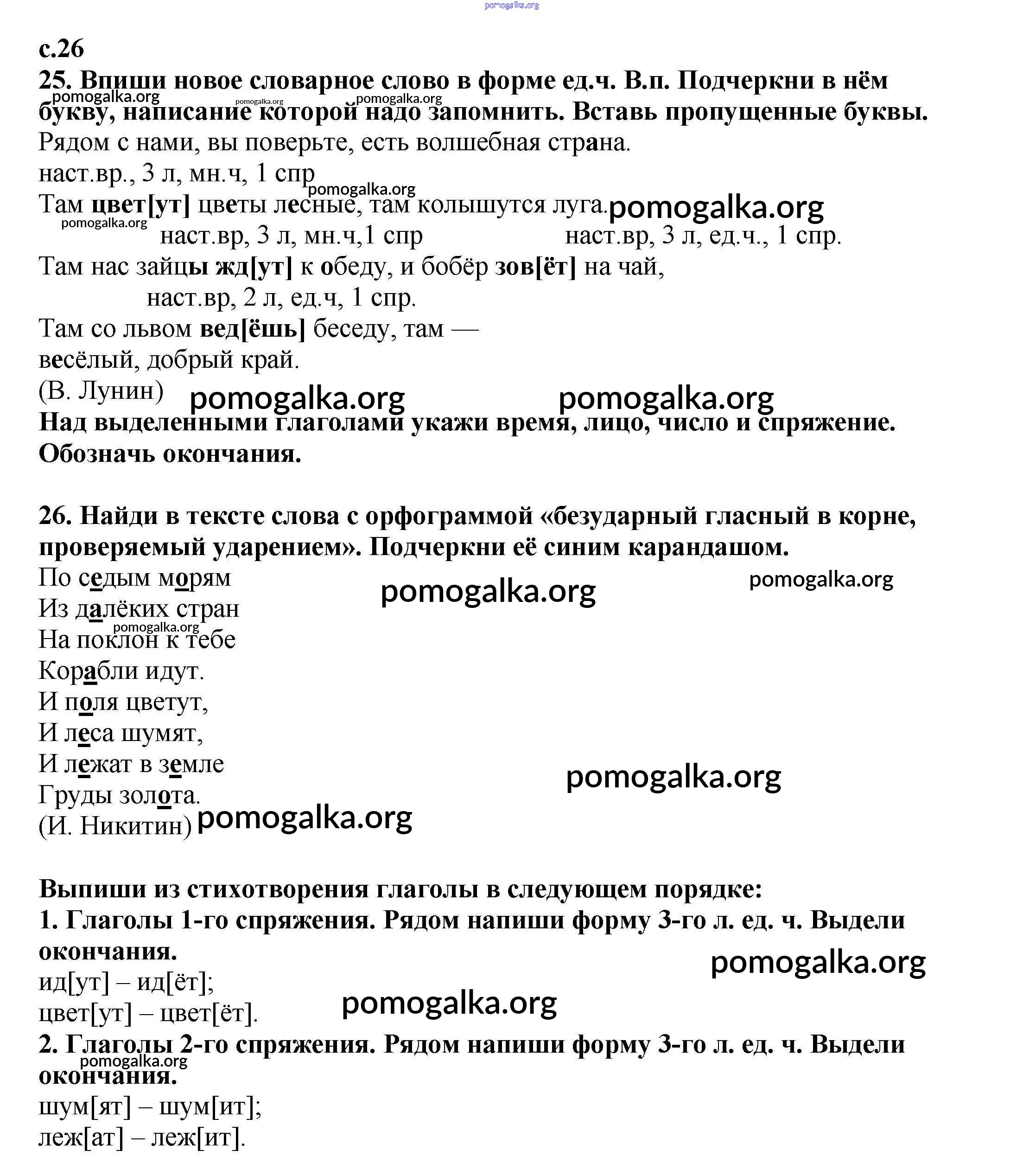 Готовые ответы - Русский язык 4 класс тетрадь для самостоятельных работ Байкова Т.А. - часть 1. страница 26