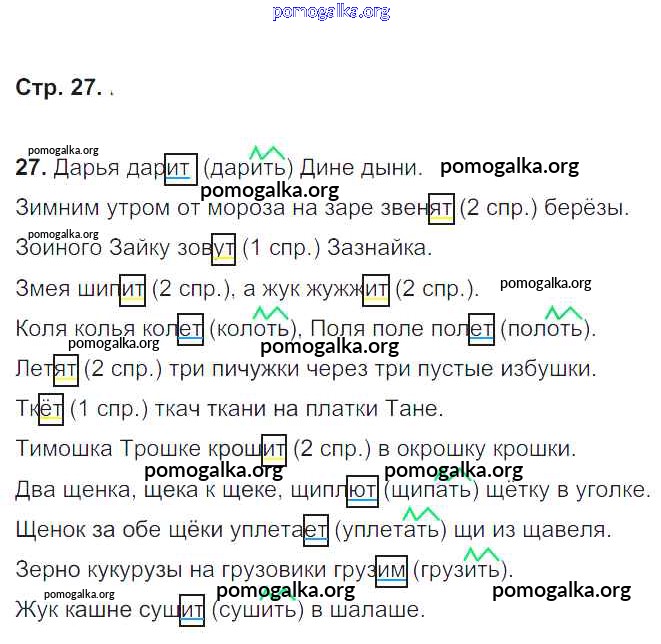 Готовые ответы - Русский язык 4 класс тетрадь для самостоятельных работ Байкова Т.А. - часть 1. страница 27