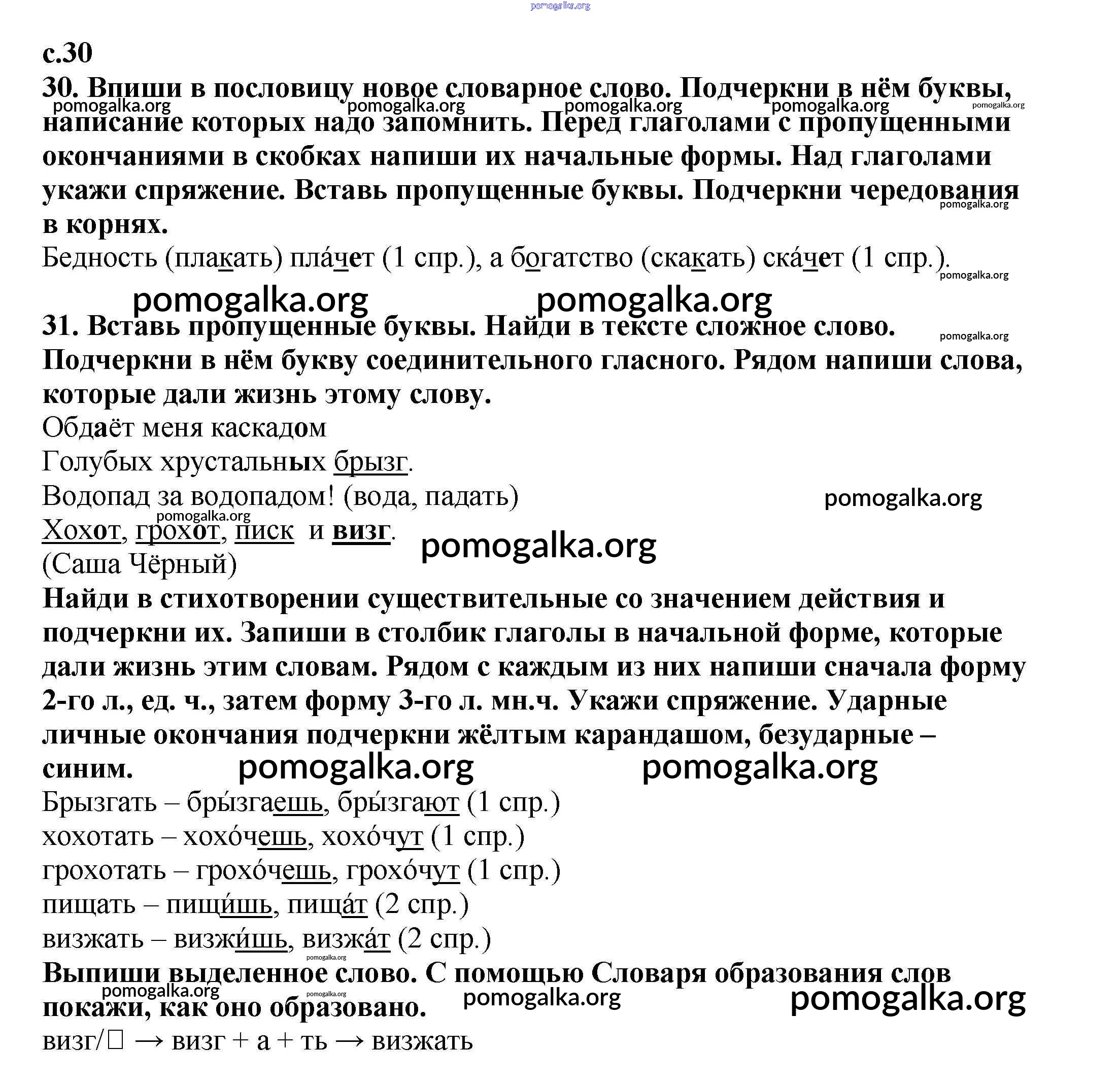 Готовые ответы - Русский язык 4 класс тетрадь для самостоятельных работ Байкова Т.А. - часть 1. страница 30