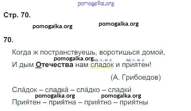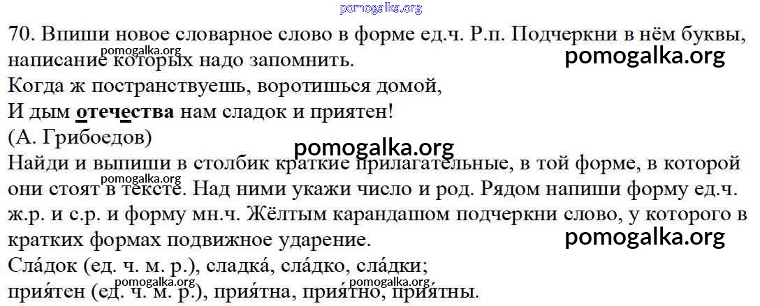 Готовые ответы - Русский язык 4 класс тетрадь для самостоятельных работ Байкова Т.А. - часть 1. страница 70