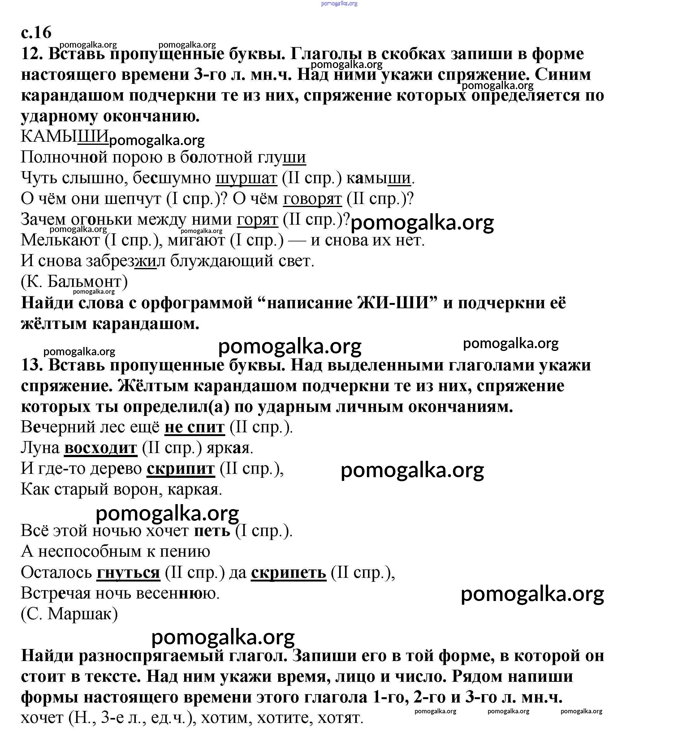 Готовые ответы - Русский язык 4 класс тетрадь для самостоятельных работ Байкова Т.А. - часть 2. страница 16