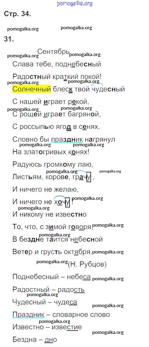 Готовые ответы - Русский язык 4 класс тетрадь для самостоятельных работ Байкова Т.А. - часть 2. страница 34