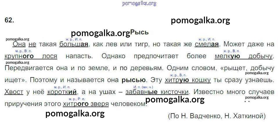 Готовые ответы - Русский язык 4 класс тетрадь для упражнений Рамзаева Т.Г. - часть 1. (упражнение) 62