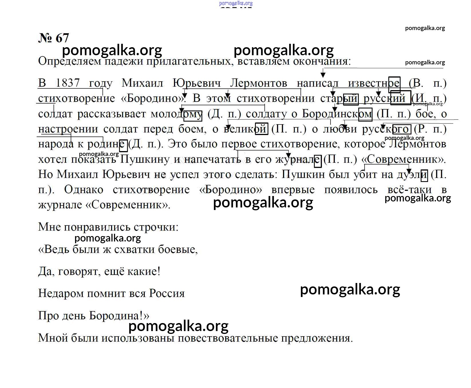 Готовые ответы - Русский язык 4 класс тетрадь для упражнений Рамзаева Т.Г. - часть 2. (упражнение) 67