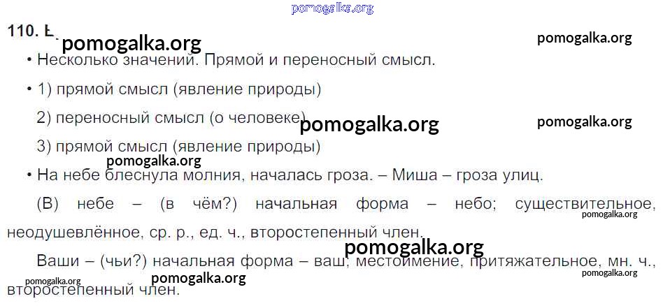 Готовые ответы - Русский язык 4 класс Бунеев Р.Н. - упражнение 110