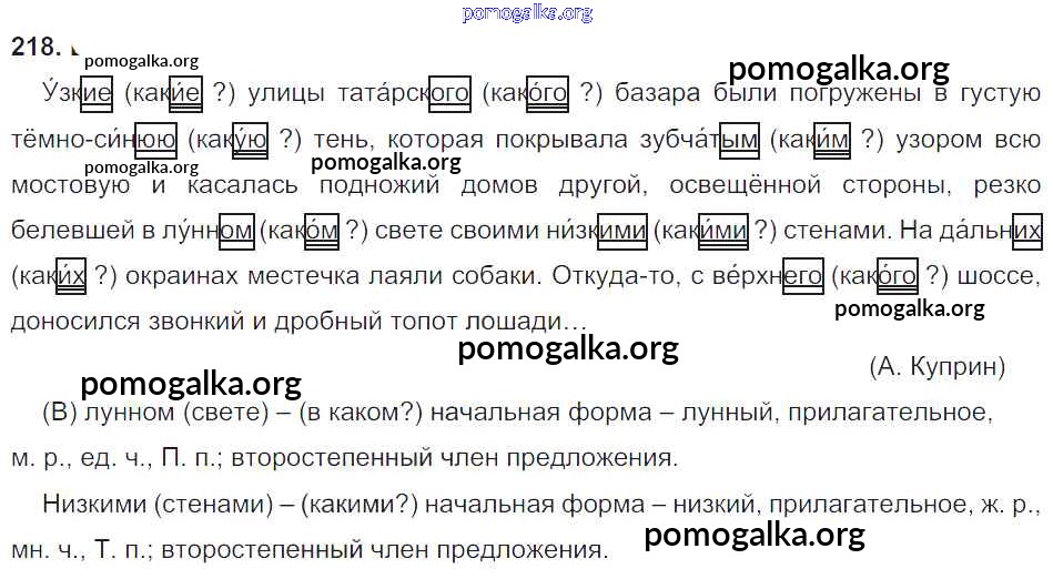 Готовые ответы - Русский язык 4 класс Бунеев Р.Н. - упражнение 218