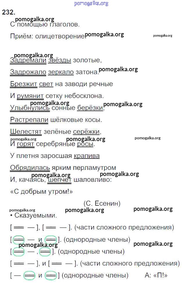 Готовые ответы - Русский язык 4 класс Бунеев Р.Н. - упражнение 232