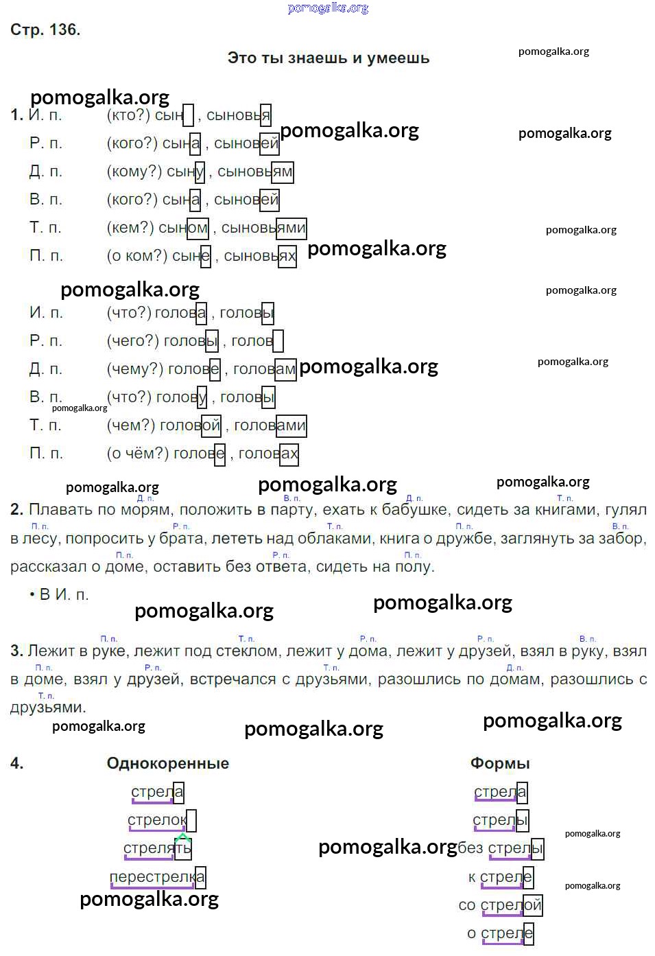 Готовые ответы - Русский язык 4 класс Бунеев Р.Н. - часть 1. страница знаем и умеем 136