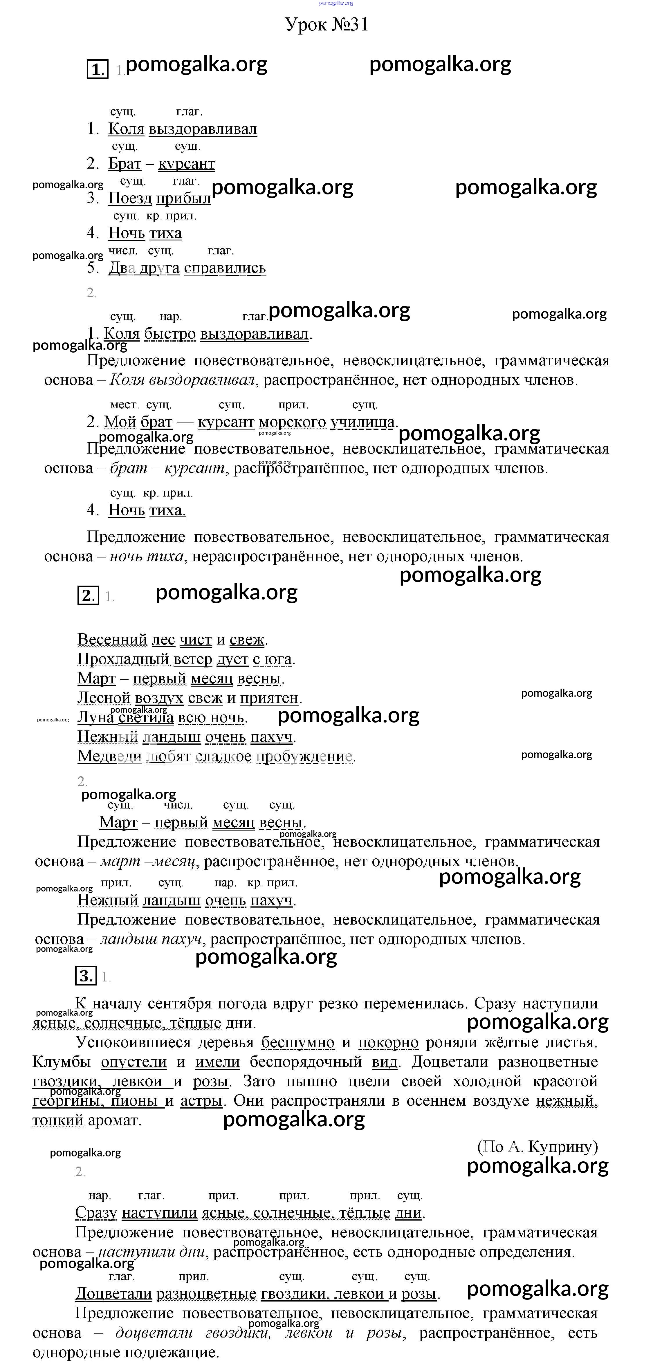 Готовые ответы - Русский язык 4 класс Иванов С.В. - урок № часть 1 31