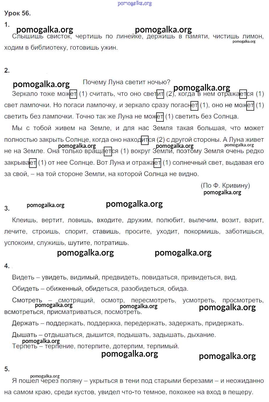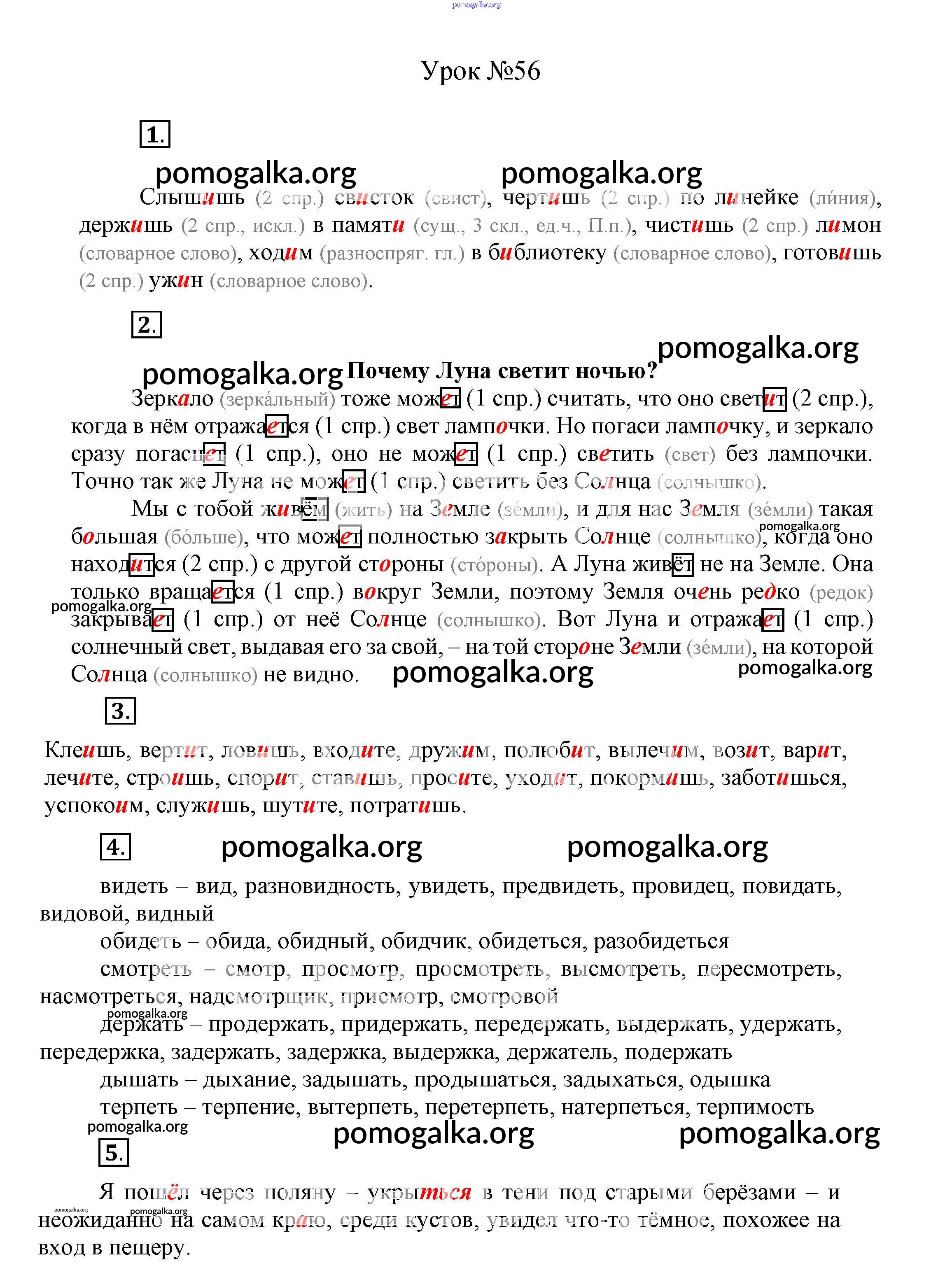 Готовые ответы - Русский язык 4 класс Иванов С.В. - урок № часть 1 56
