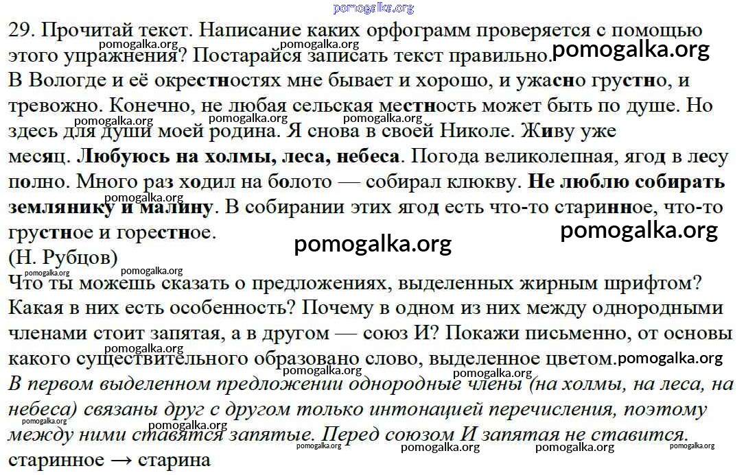 Готовые ответы - Русский язык 4 класс Каленчук М.Л. - часть 1. упражнение 29