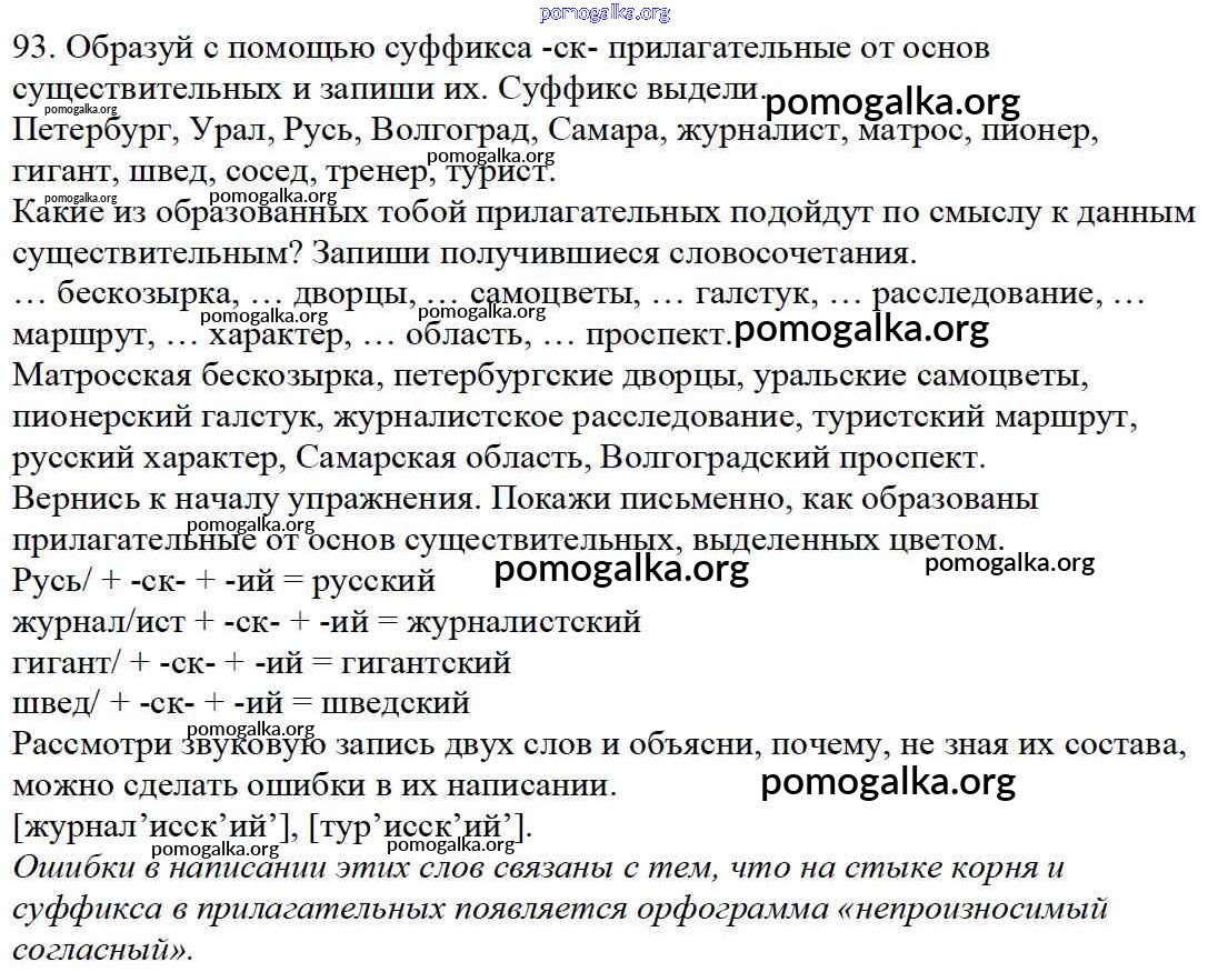 Готовые ответы - Русский язык 4 класс Каленчук М.Л. - часть 3. упражнение 93