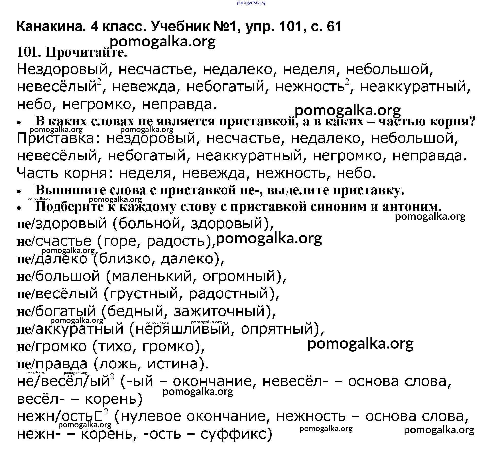 Готовые ответы - Русский язык 4 класс Канакина В.П. - часть 1 101