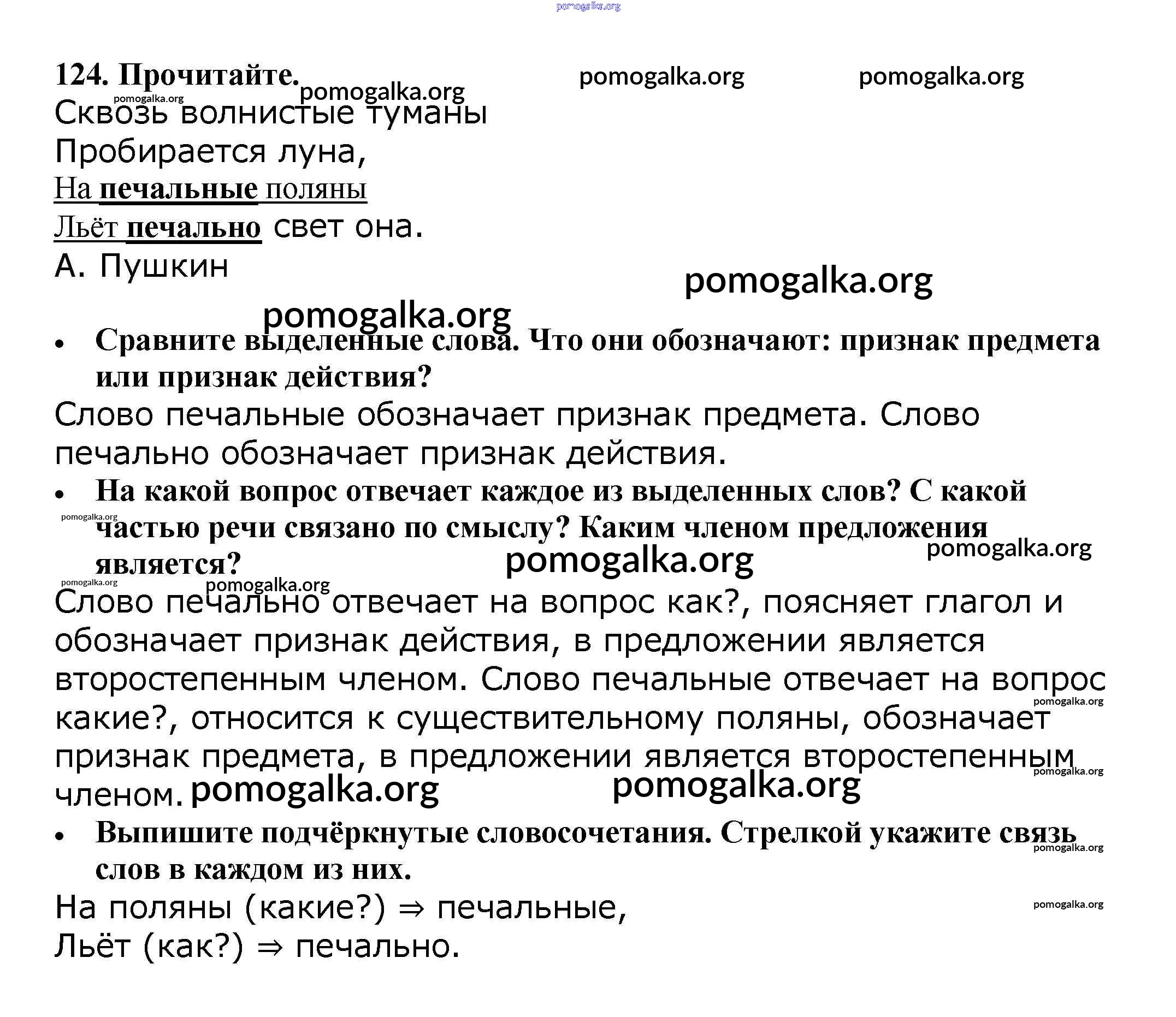 Готовые ответы - Русский язык 4 класс Канакина В.П. - часть 1 124