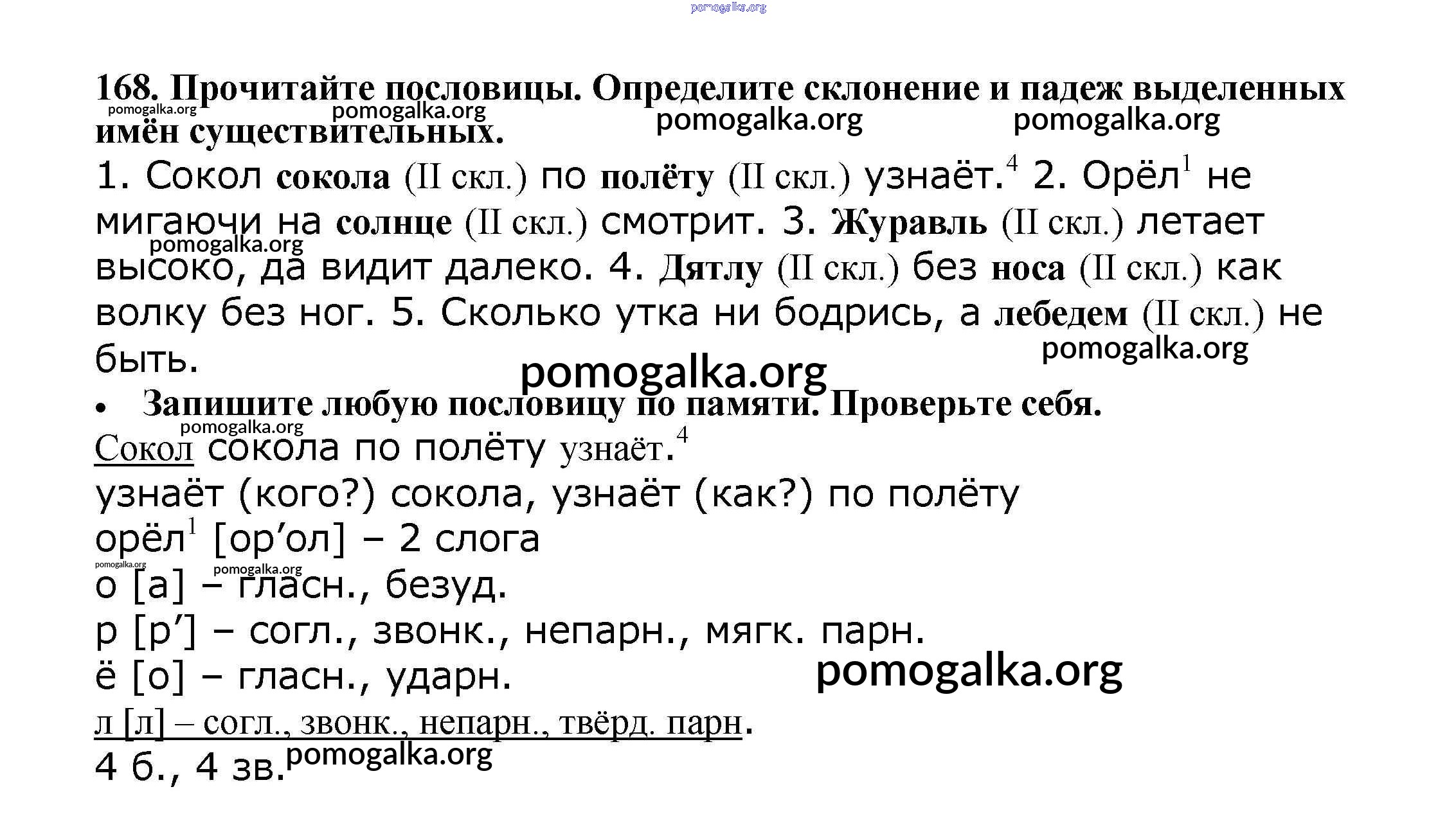 Готовые ответы - Русский язык 4 класс Канакина В.П. - часть 1 168