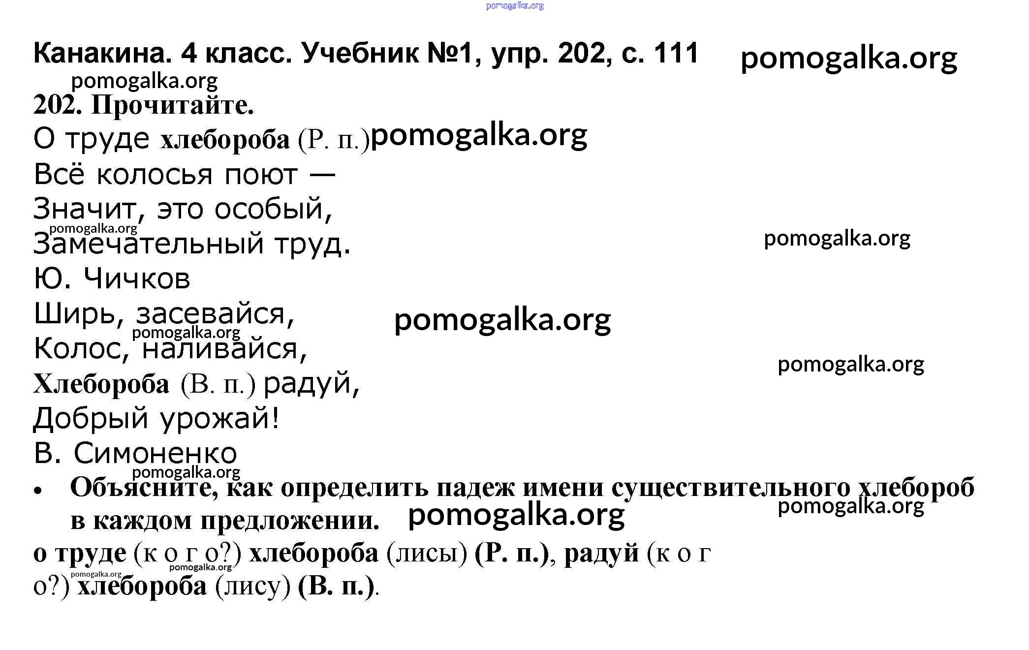 Готовые ответы - Русский язык 4 класс Канакина В.П. - часть 1 202