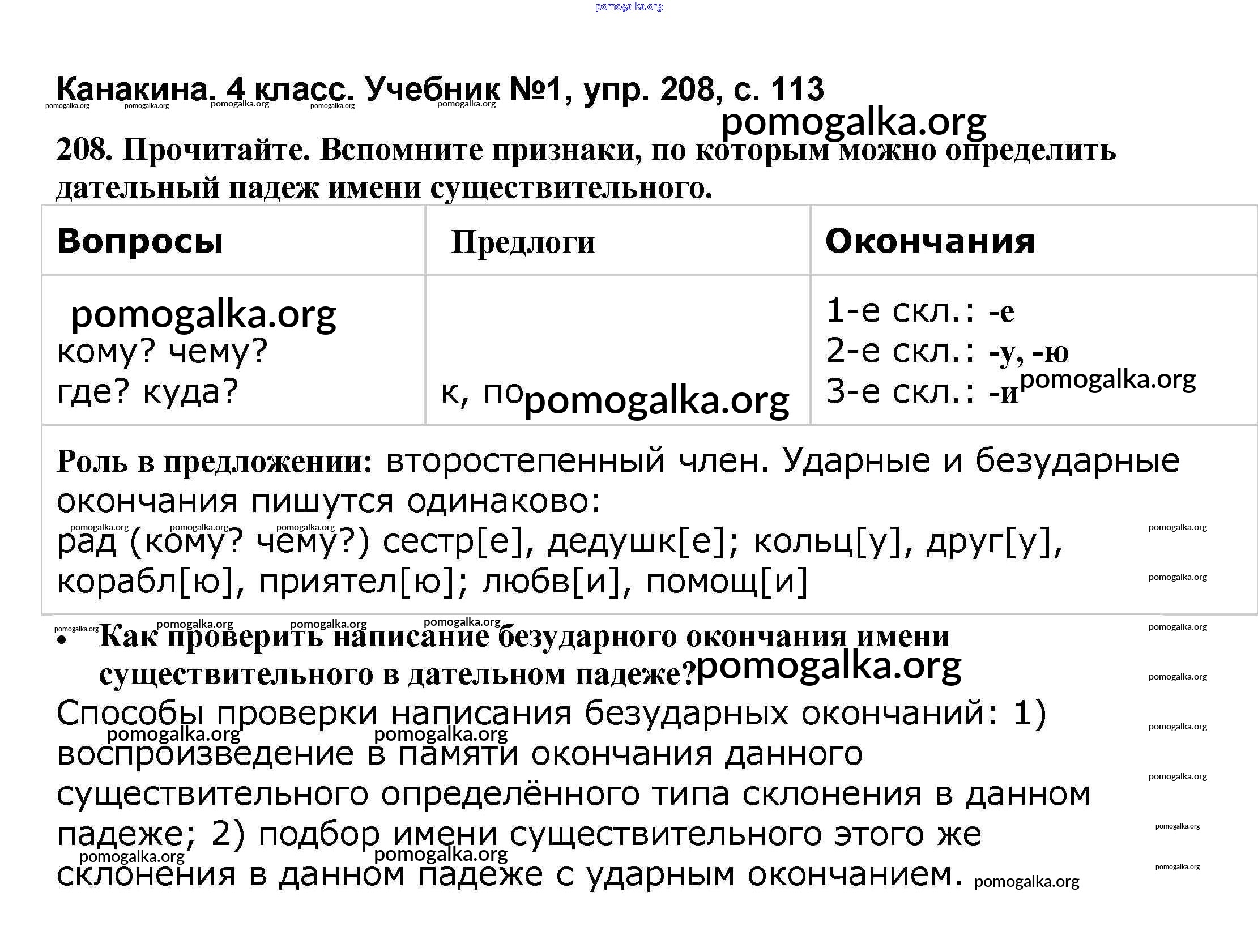 Готовые ответы - Русский язык 4 класс Канакина В.П. - часть 1 208