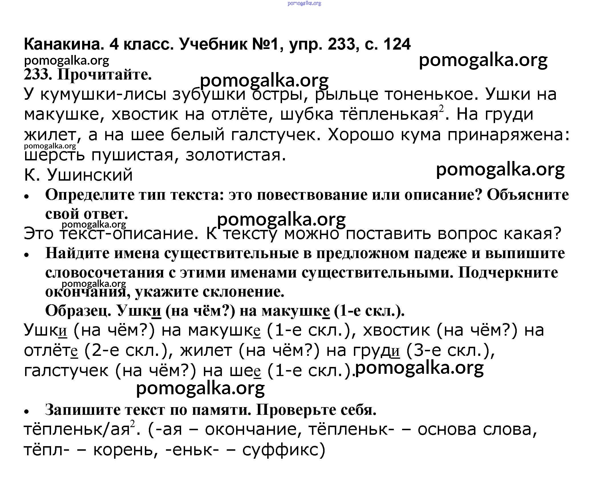Готовые ответы - Русский язык 4 класс Канакина В.П. - часть 1 233
