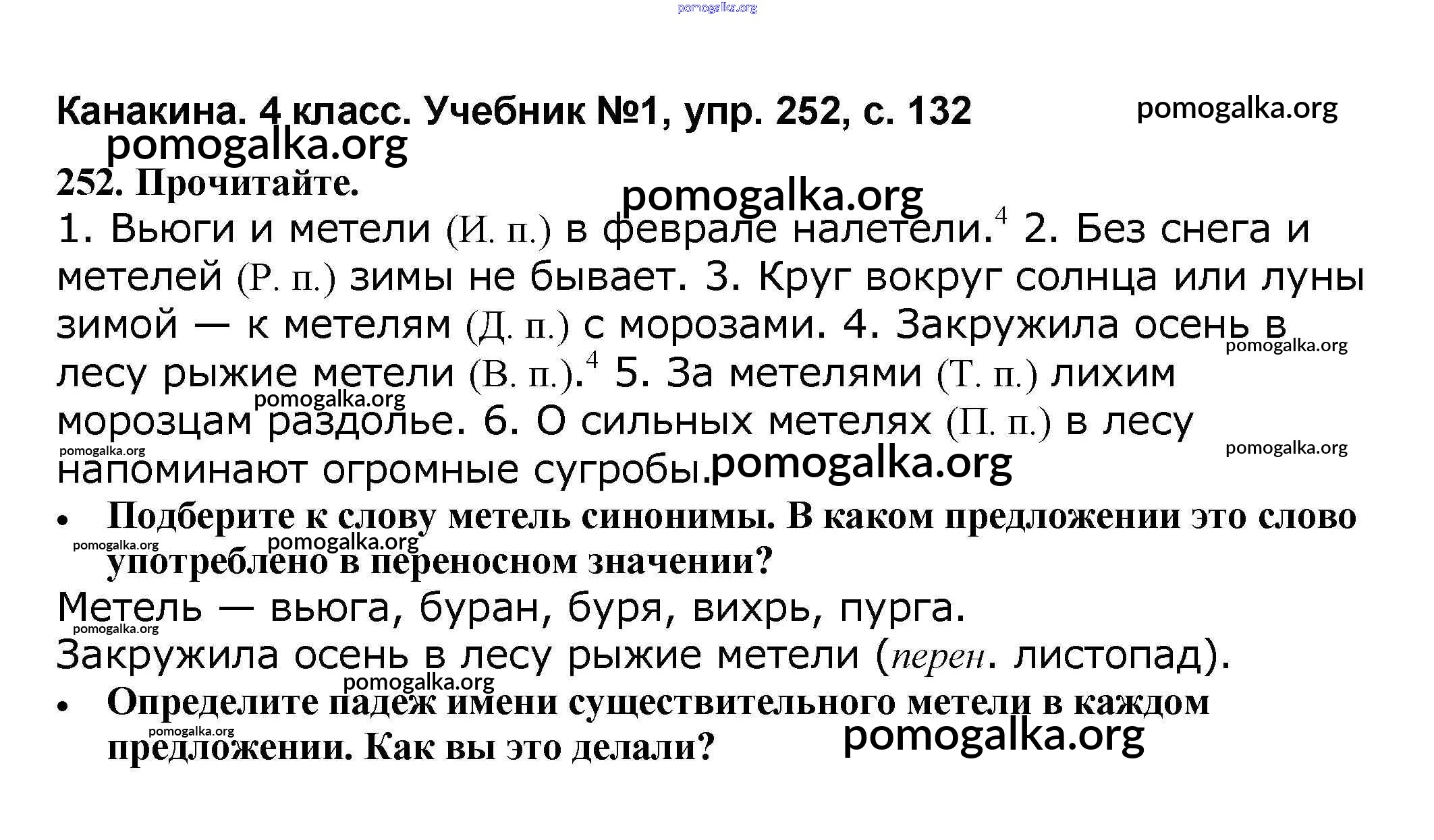 Готовые ответы - Русский язык 4 класс Канакина В.П. - часть 1 252
