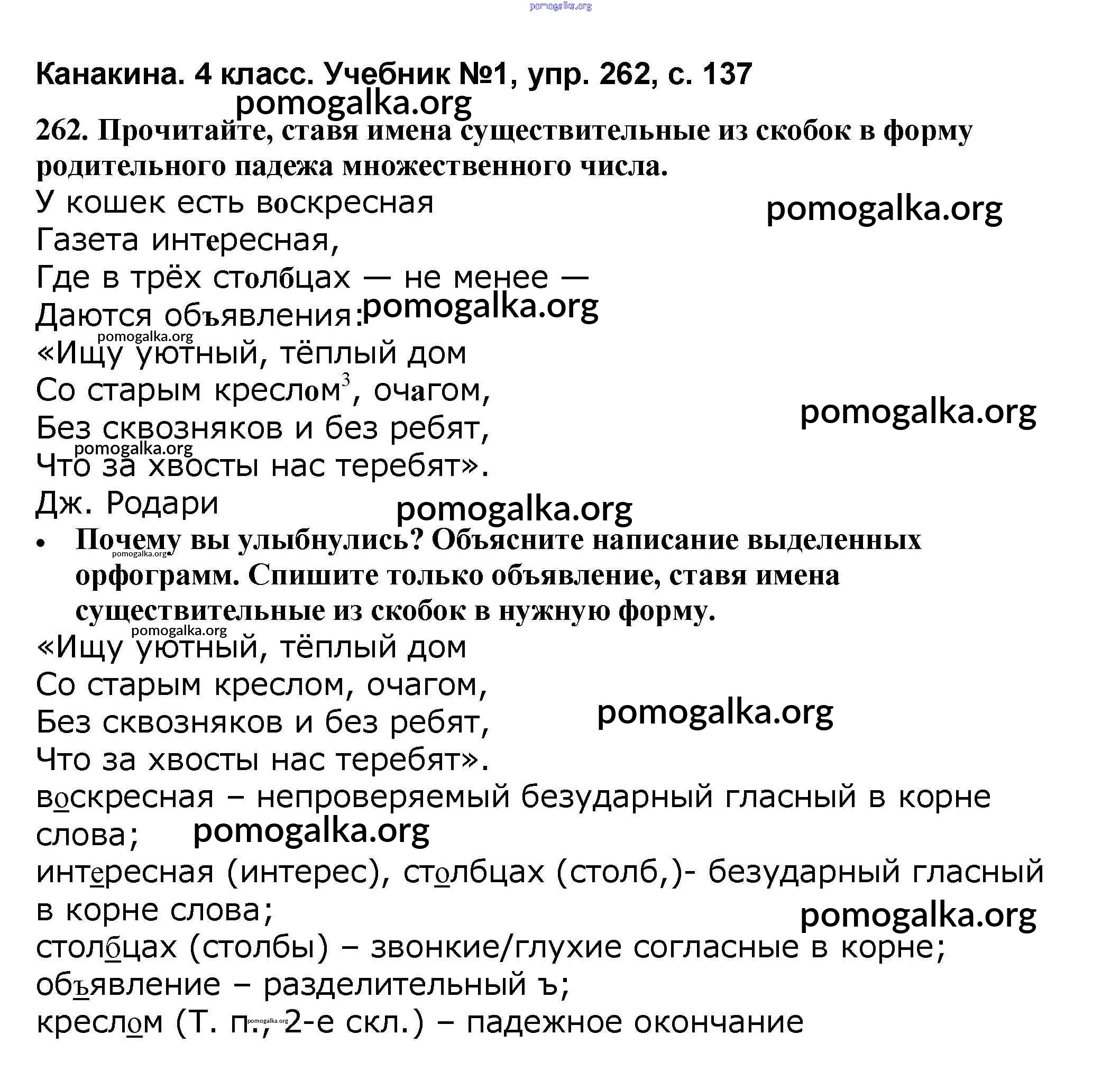 Готовые ответы - Русский язык 4 класс Канакина В.П. - часть 1 262