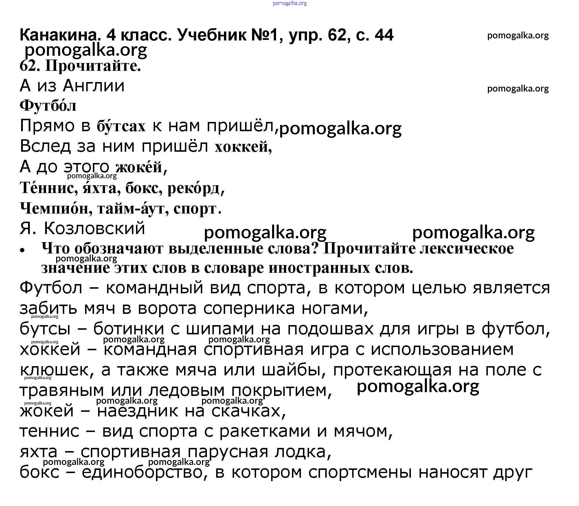 Готовые ответы - Русский язык 4 класс Канакина В.П. - часть 1 62