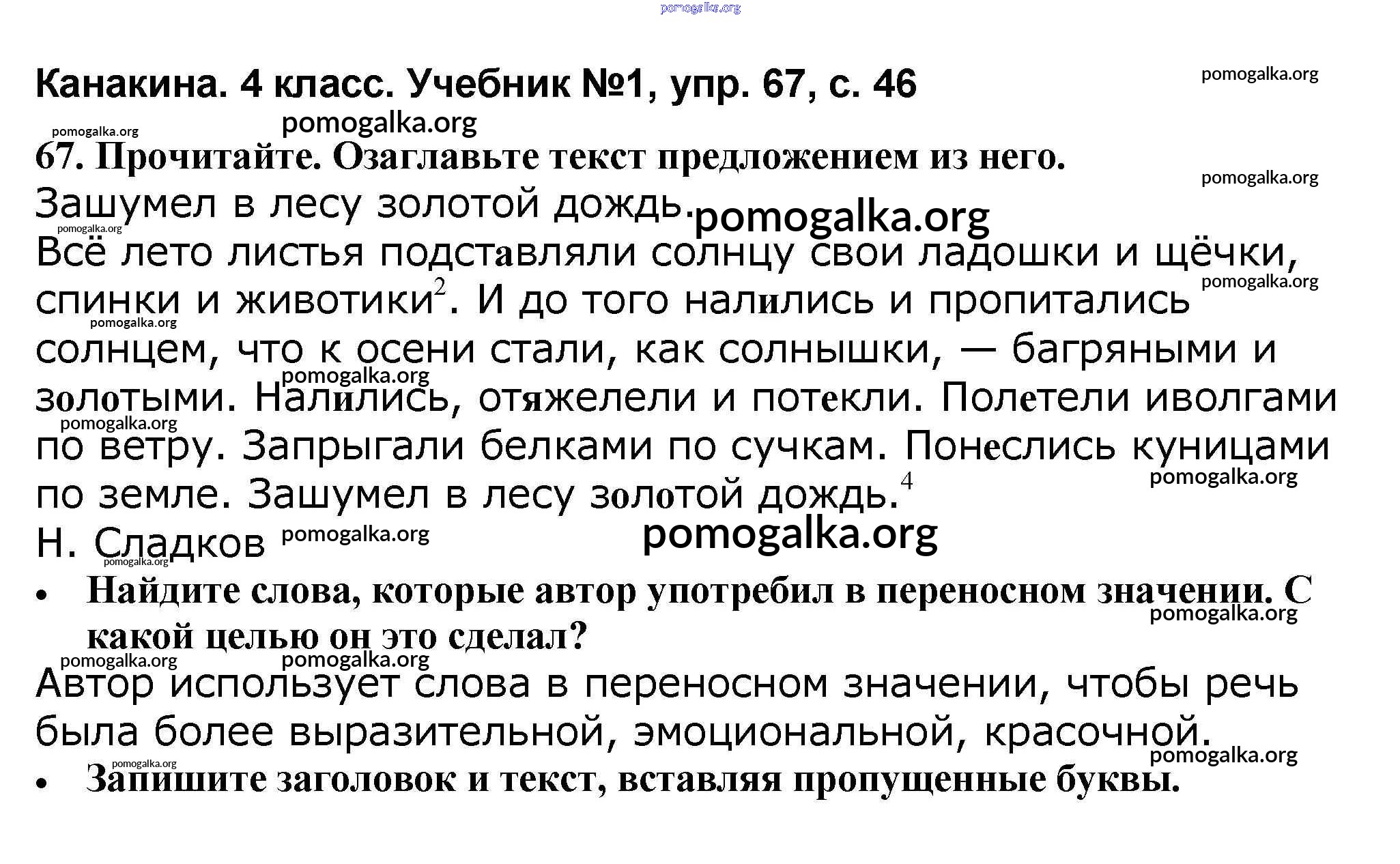 Готовые ответы - Русский язык 4 класс Канакина В.П. - часть 1 67