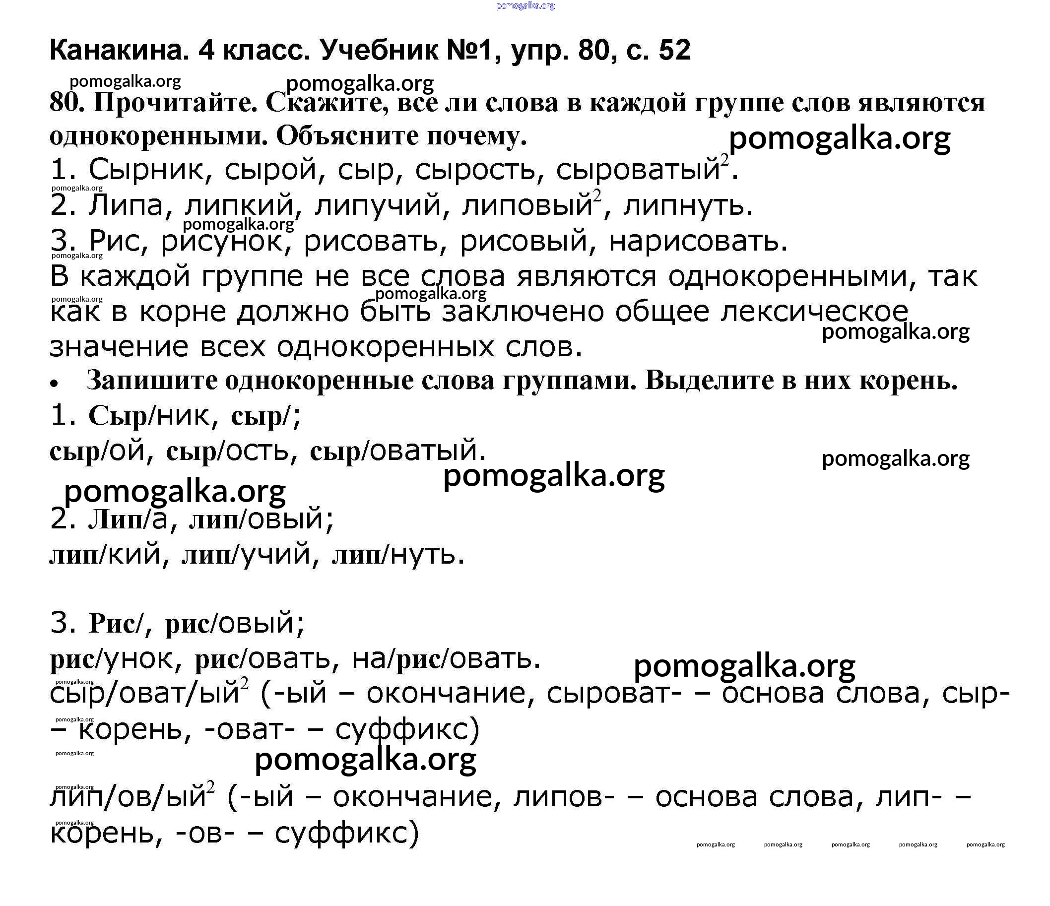 Готовые ответы - Русский язык 4 класс Канакина В.П. - часть 1 80