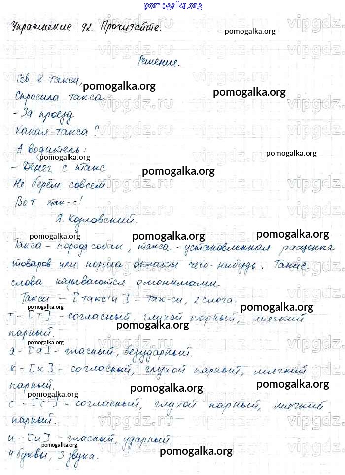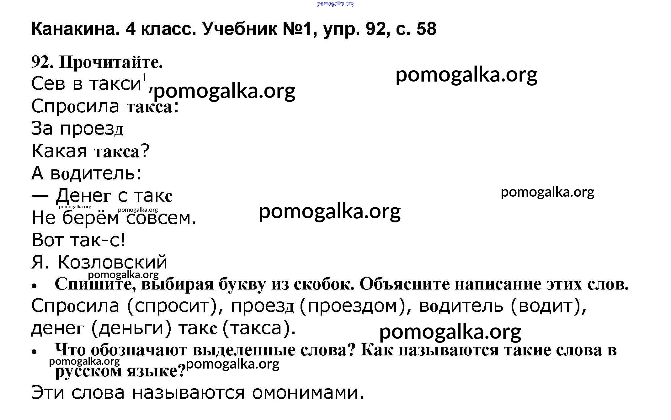 Готовые ответы - Русский язык 4 класс Канакина В.П. - часть 1 92