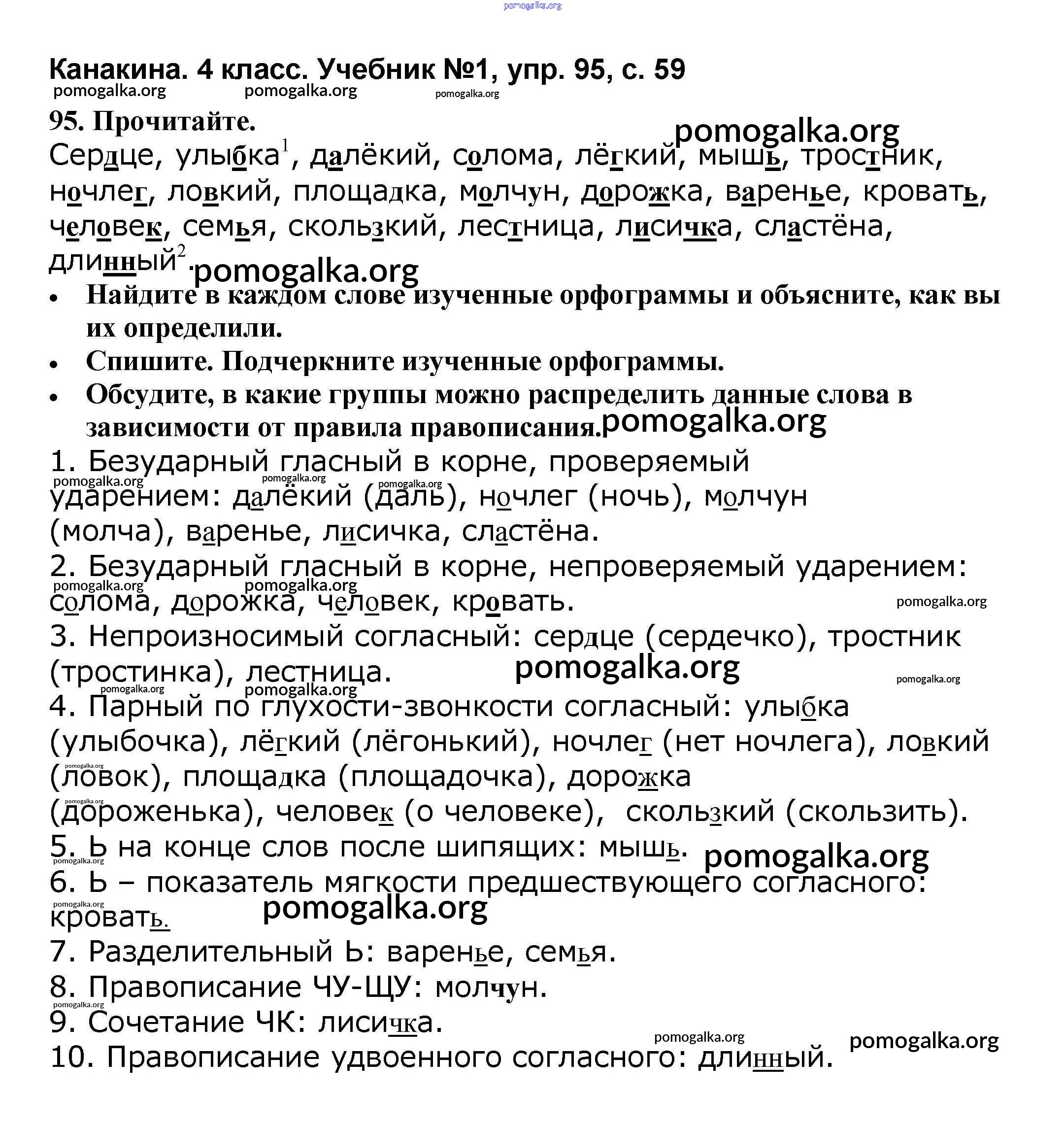 Готовые ответы - Русский язык 4 класс Канакина В.П. - часть 1 95