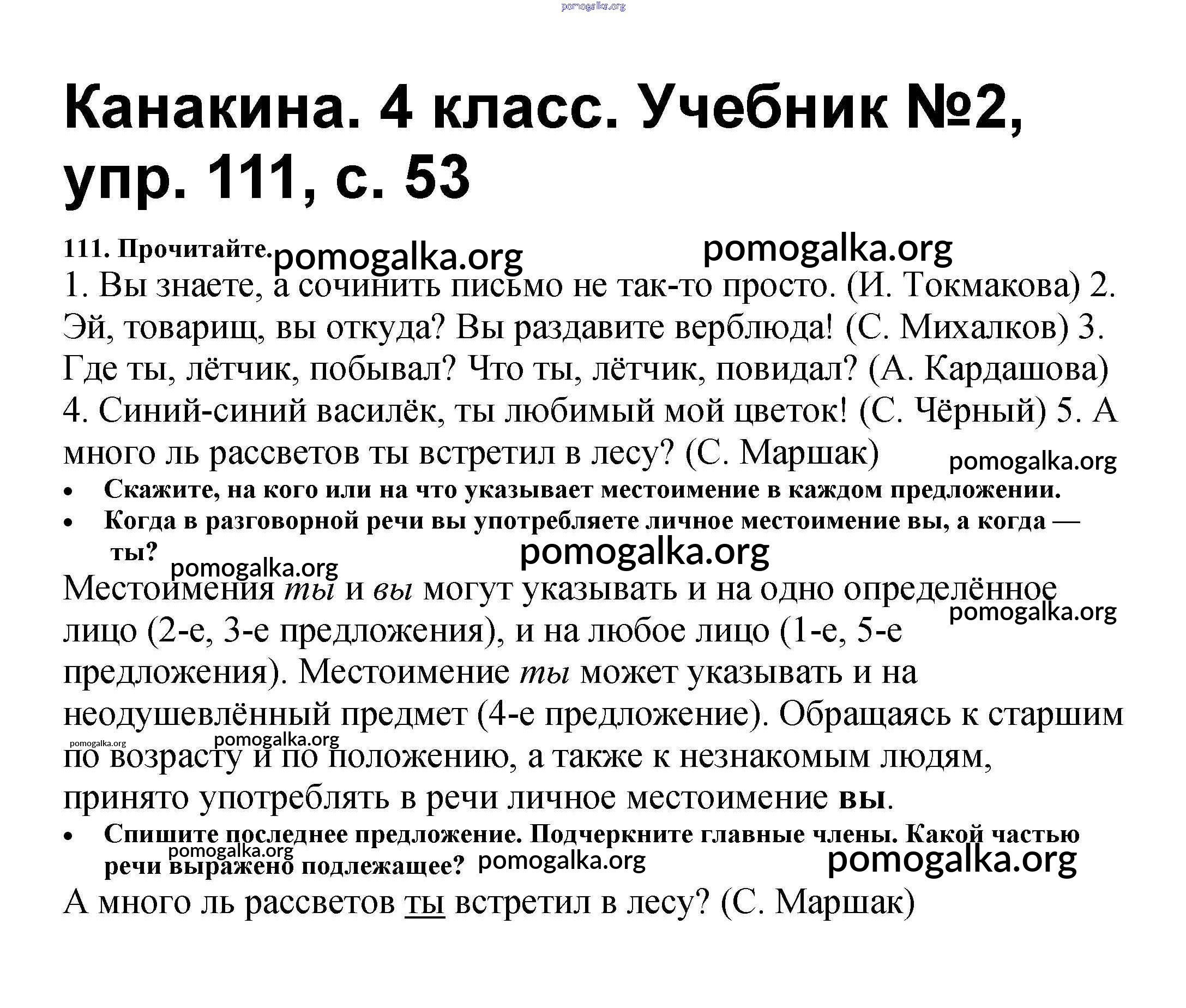 Готовые ответы - Русский язык 4 класс Канакина В.П. - часть 2 111
