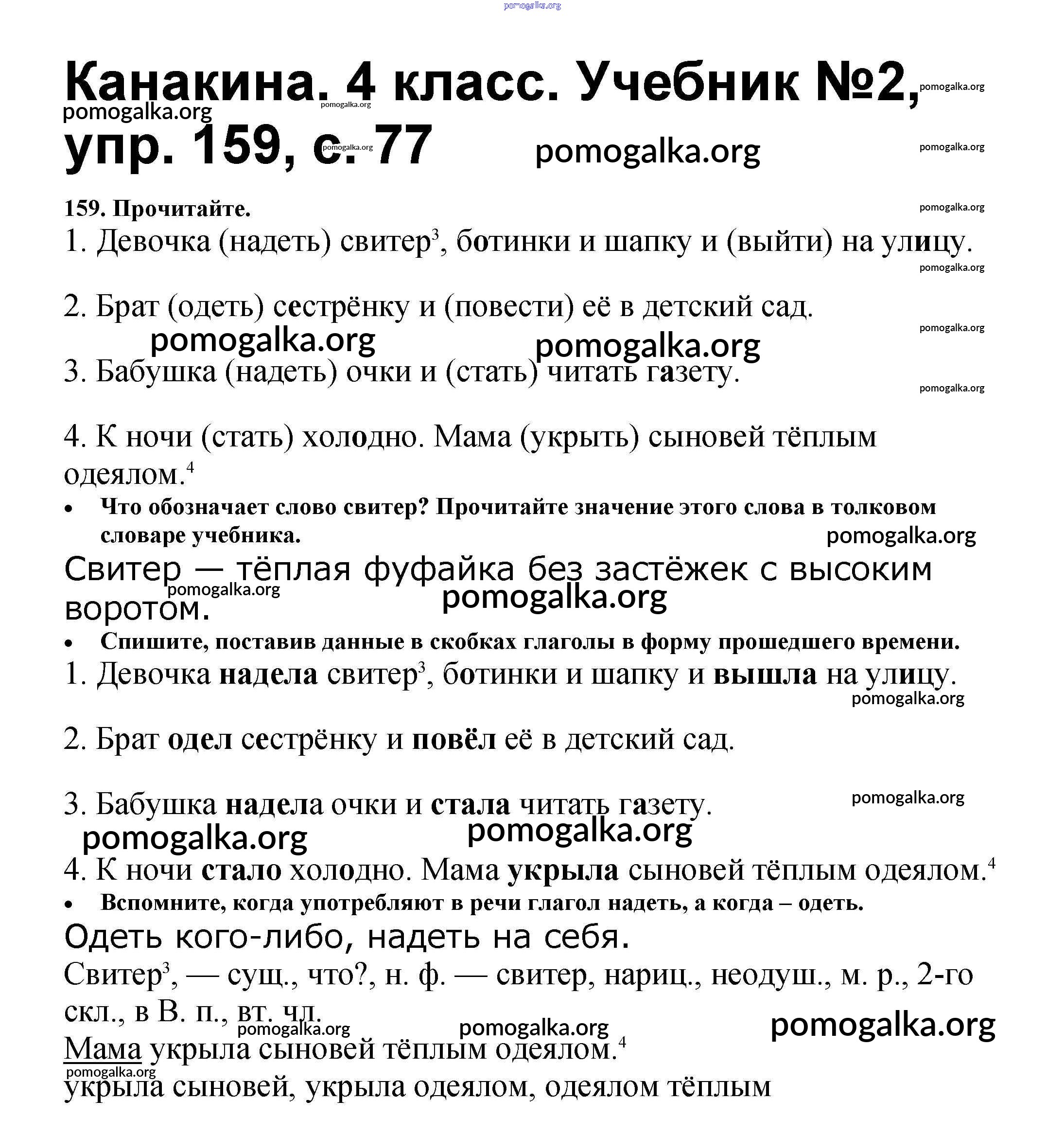 Готовые ответы - Русский язык 4 класс Канакина В.П. - часть 2 159