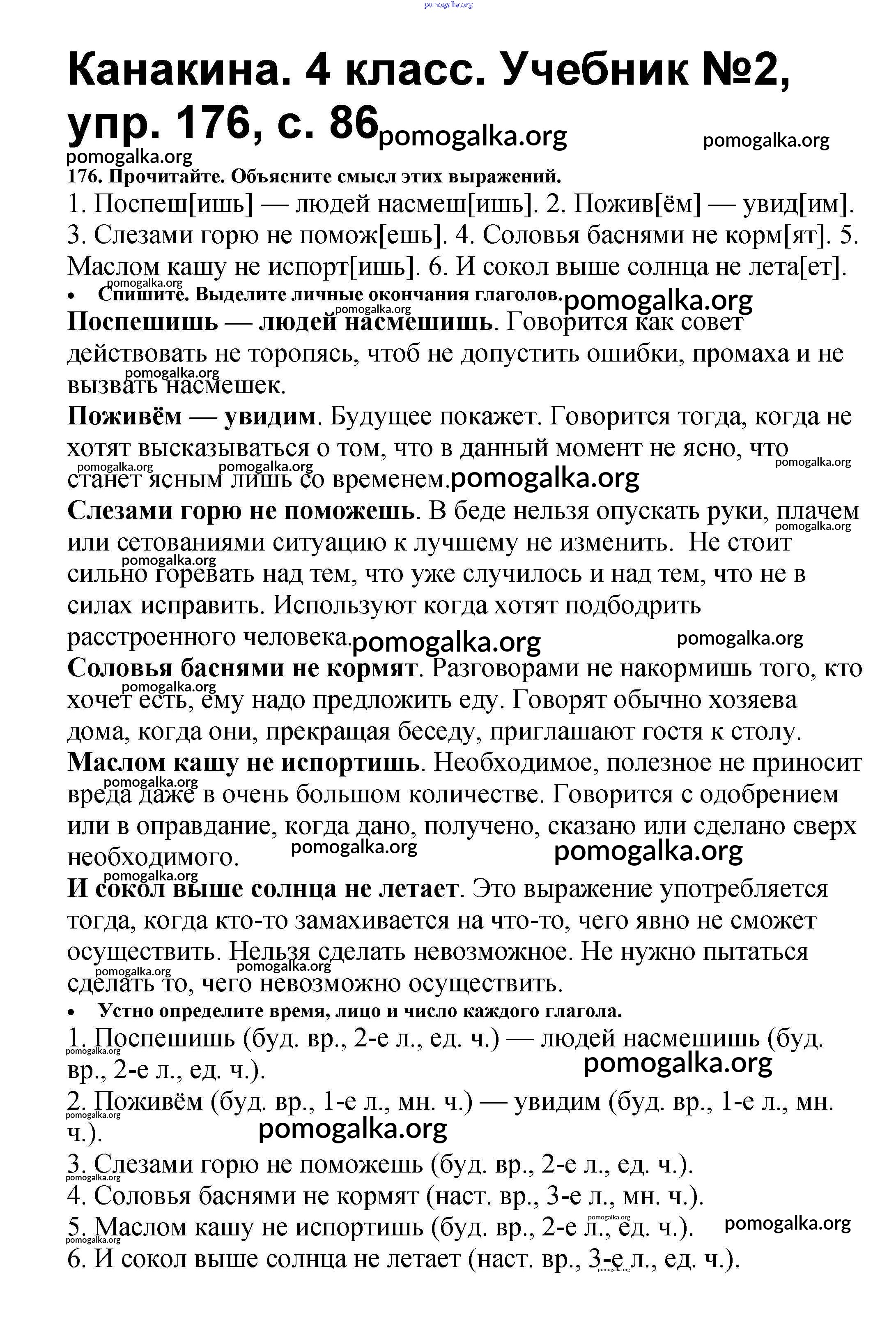 Готовые ответы - Русский язык 4 класс Канакина В.П. - часть 2 176
