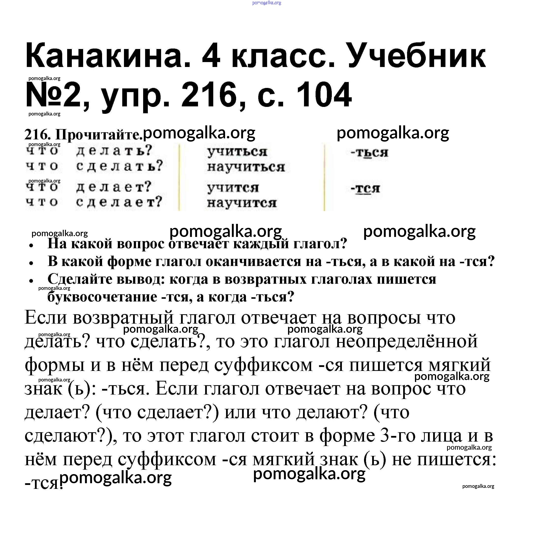 Готовые ответы - Русский язык 4 класс Канакина В.П. - часть 2 216