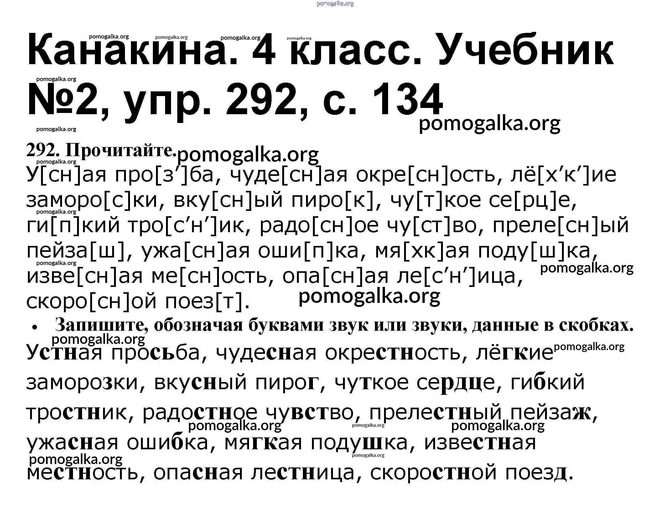 Готовые ответы - Русский язык 4 класс Канакина В.П. - часть 2 292