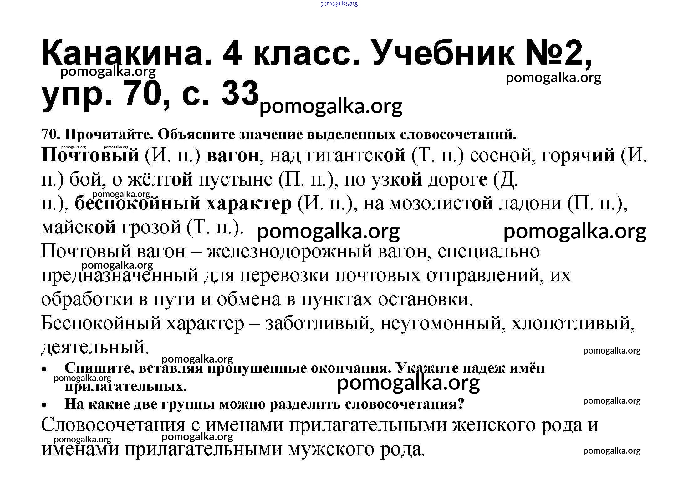 Готовые ответы - Русский язык 4 класс Канакина В.П. - часть 2 70