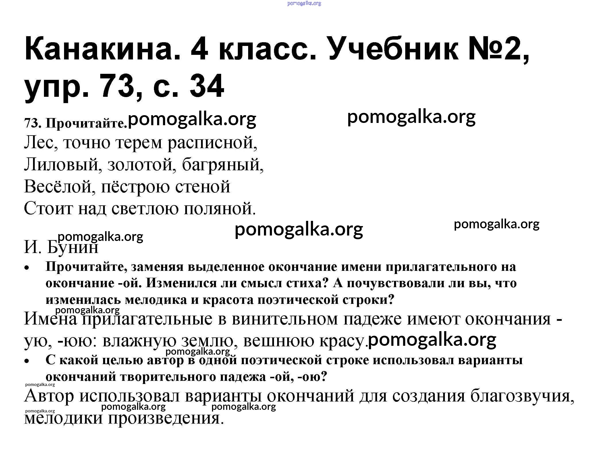 Готовые ответы - Русский язык 4 класс Канакина В.П. - часть 2 73