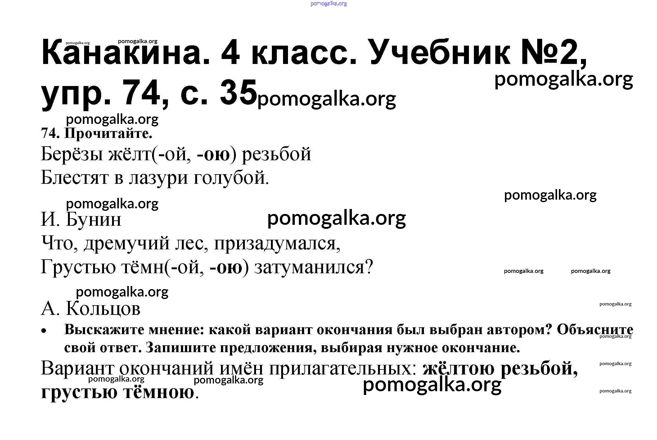 Готовые ответы - Русский язык 4 класс Канакина В.П. - часть 2 74