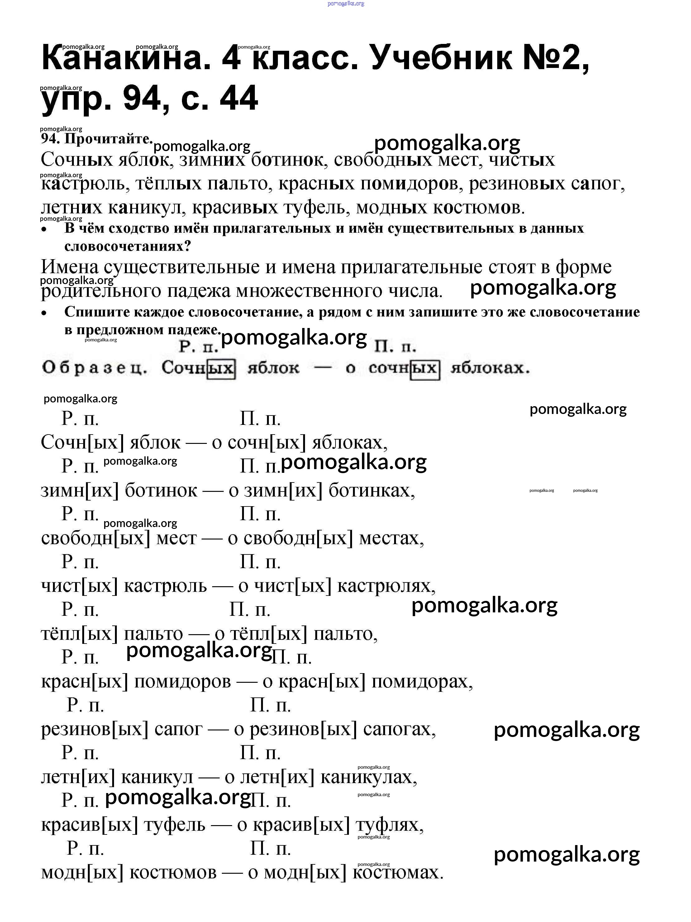 Готовые ответы - Русский язык 4 класс Канакина В.П. - часть 2 94