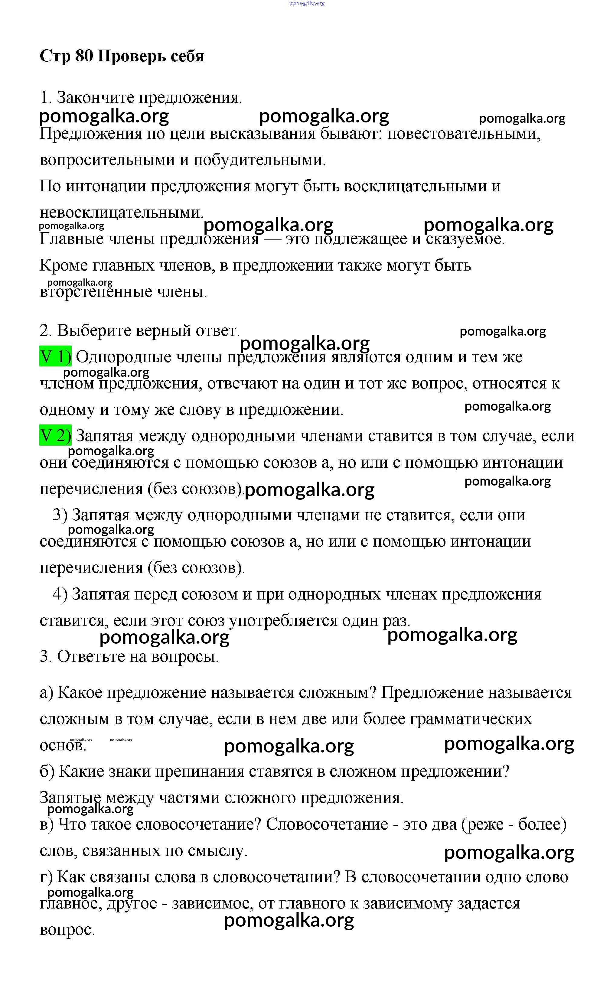 Готовые ответы - Русский язык 4 класс Климанова Л.Ф. - часть 1. страница проверь себя 80