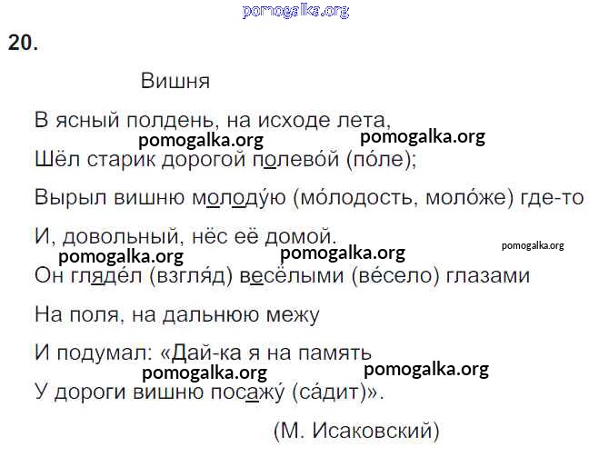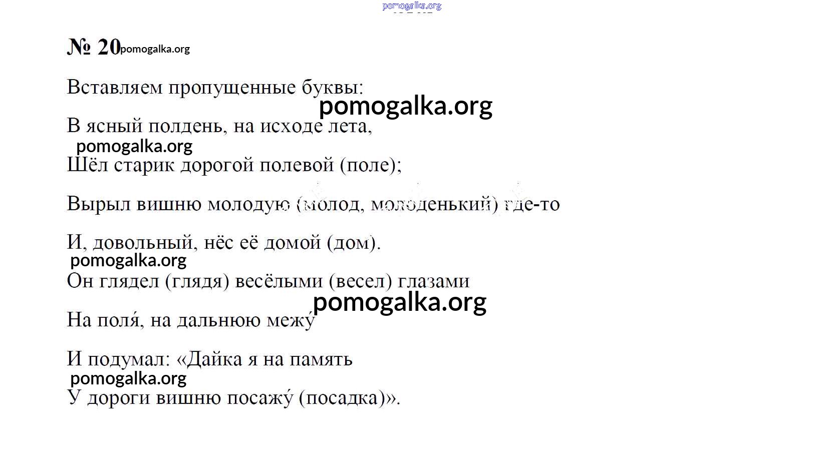 Готовые ответы - Русский язык 4 класс Рамзаева Т.Г. - часть 1. упражнение № 20
