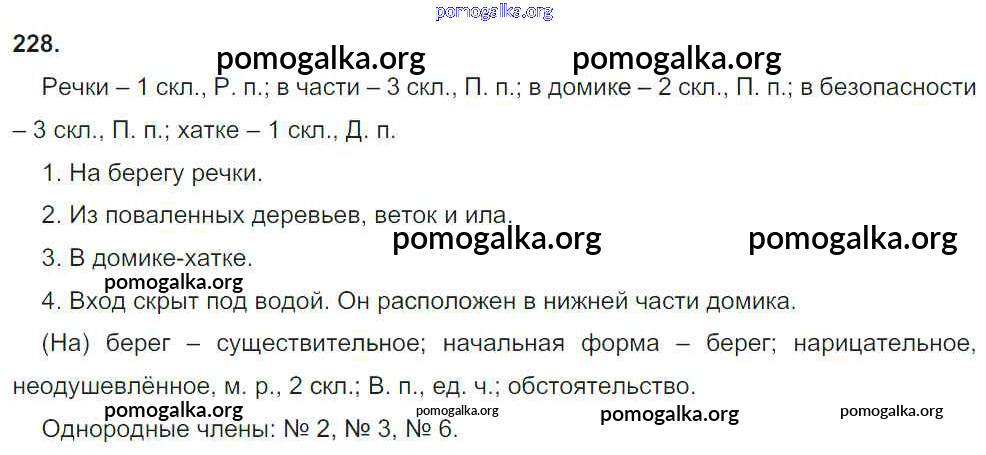 Готовые ответы - Русский язык 4 класс Рамзаева Т.Г. - часть 1. упражнение № 228