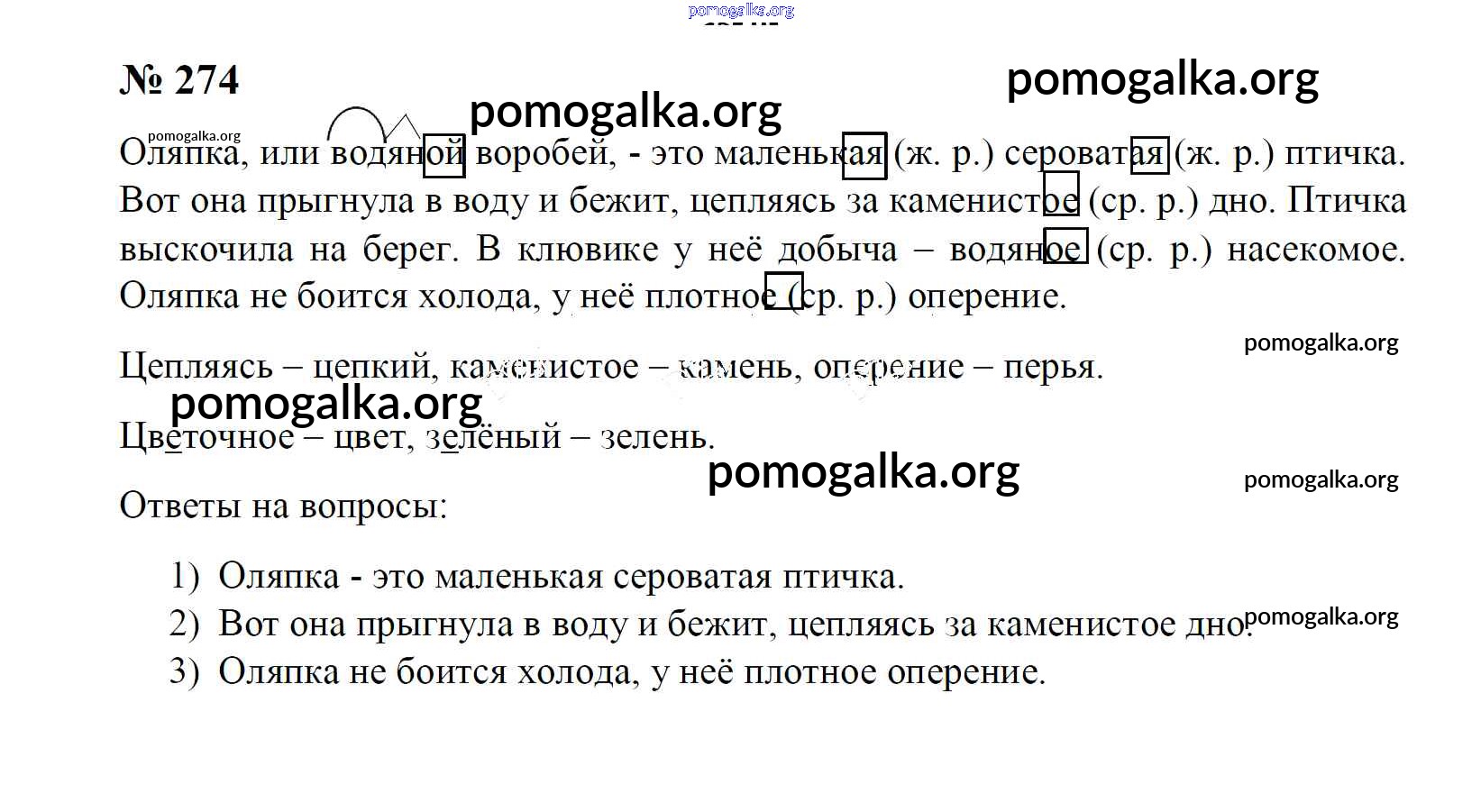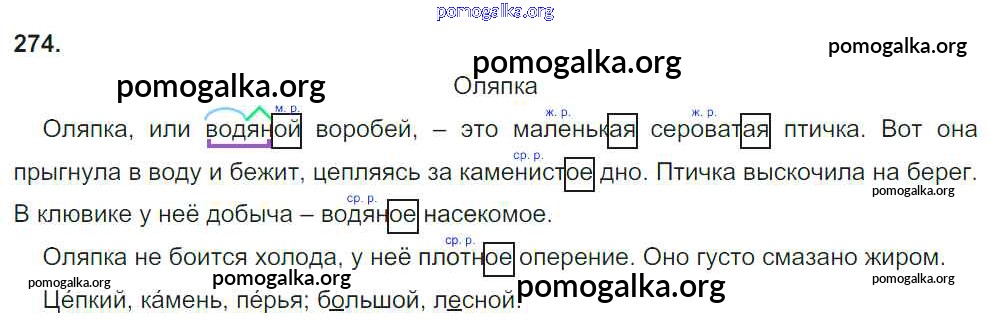Готовые ответы - Русский язык 4 класс Рамзаева Т.Г. - часть 1. упражнение № 274
