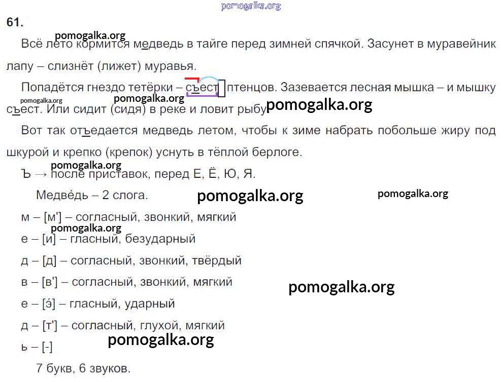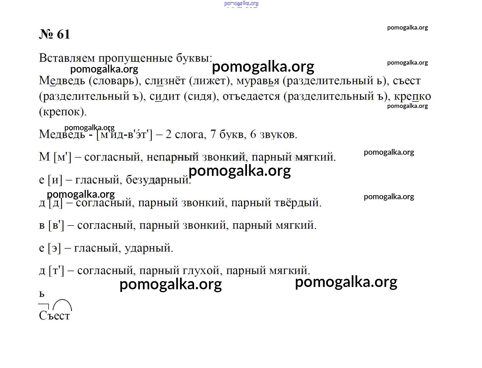 Готовые ответы - Русский язык 4 класс Рамзаева Т.Г. - часть 1. упражнение № 61