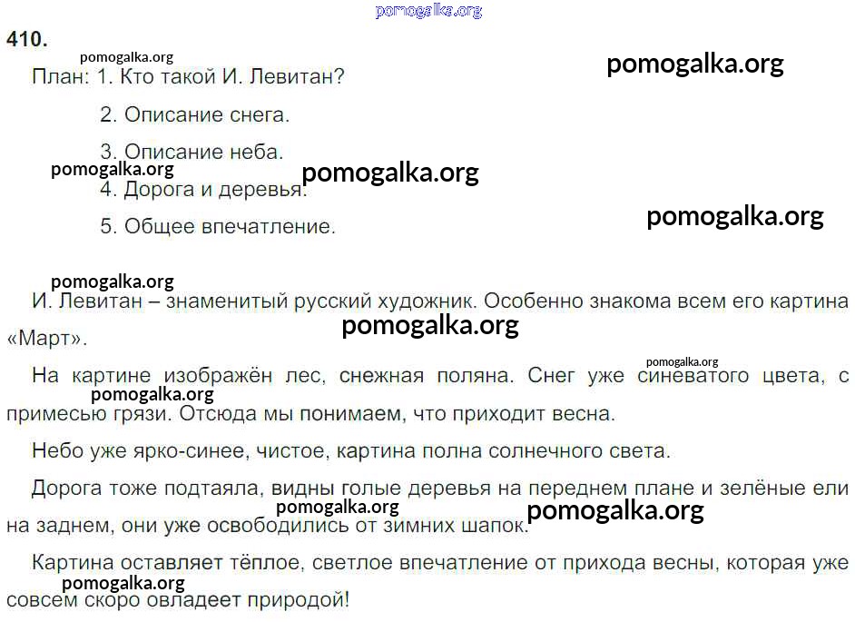 Готовые ответы - Русский язык 4 класс Рамзаева Т.Г. - часть 2. упражнение № 410