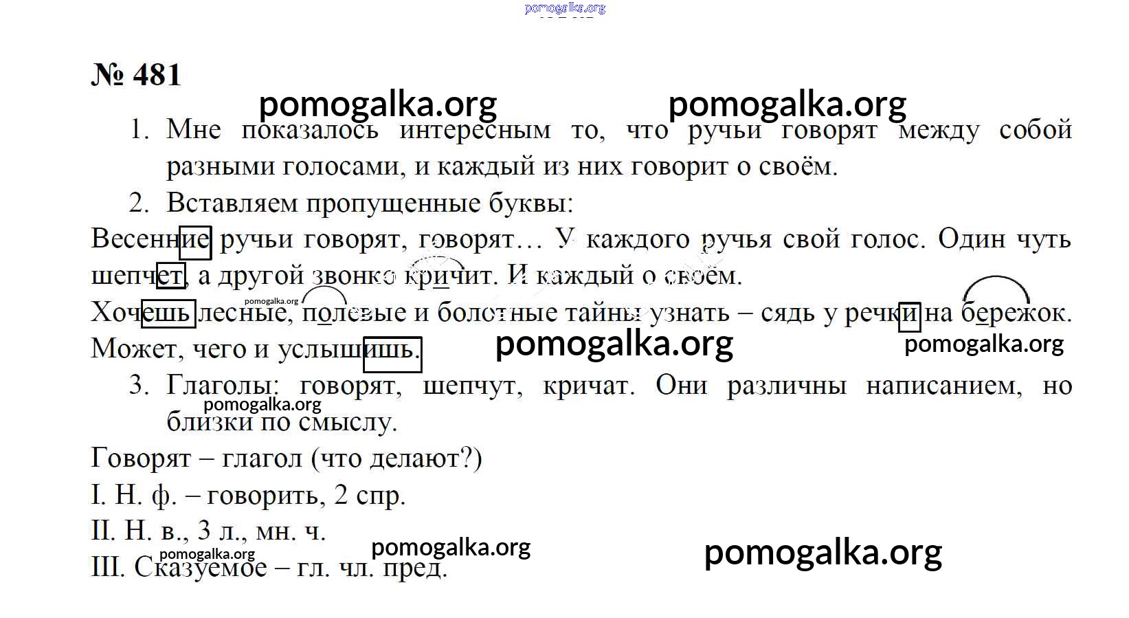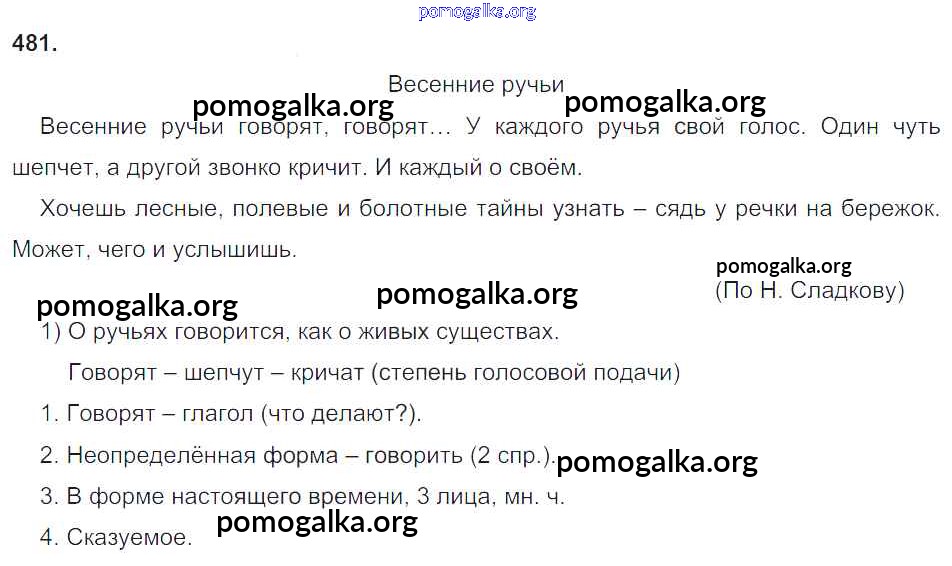Готовые ответы - Русский язык 4 класс Рамзаева Т.Г. - часть 2. упражнение № 481