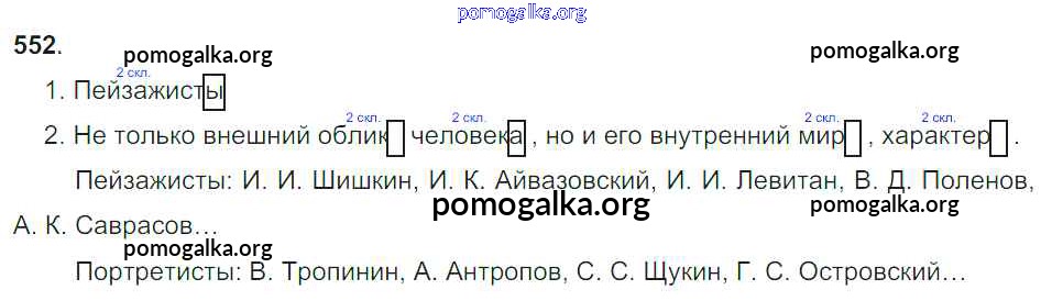 Готовые ответы - Русский язык 4 класс Рамзаева Т.Г. - часть 2. упражнение № 552