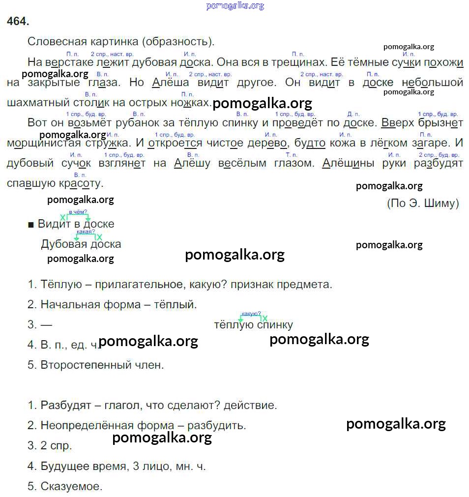 Готовые ответы - Русский язык 4 класс Соловейчик М.С. - часть 2. упражнение № 464