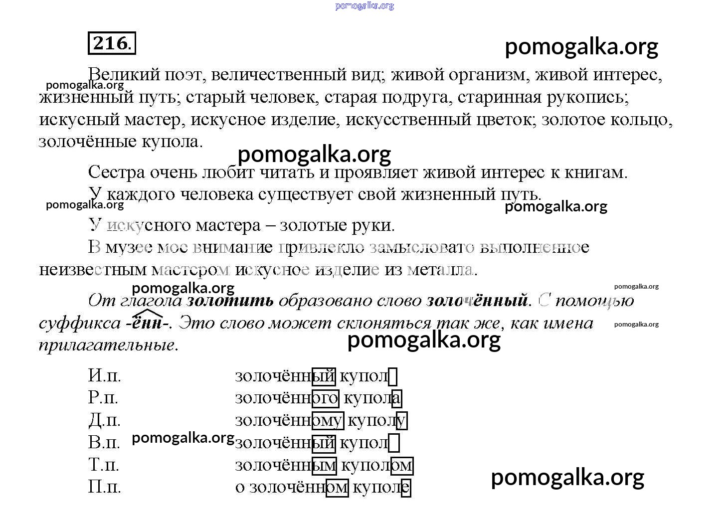 Готовые ответы - Русский язык 4 класс Желтовская Л.Я. - упражнение часть 2 216