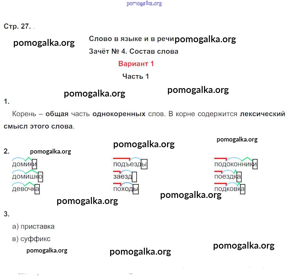 Готовые ответы - Русский язык 4 класс Зачетные работы Алимпиева М.Н. - часть 1. страница 27